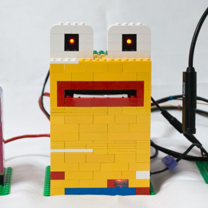 Interactive installation (mixed media, LEGO, Raspberry Pi, thermal printer, temperature sensor)